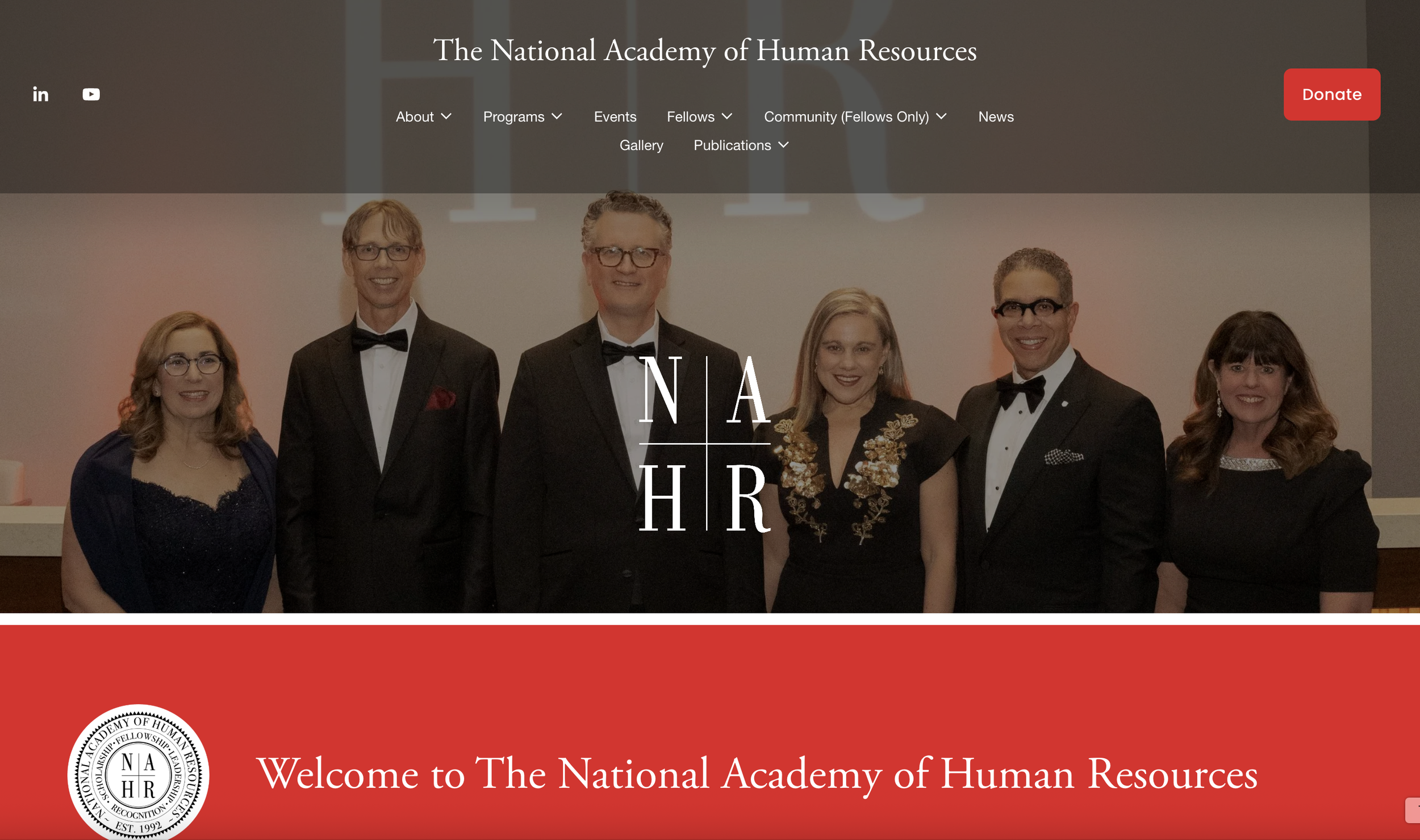 The National Academy of Human Resources, the premier honorific organization in Human Resources, launched its new website on January 1, 2026. Its new site is designed for ease of use, efficient registration for its events, and as a source of information about its Fellows and their impact in industry and education.